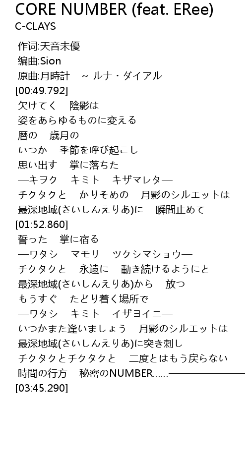 | [03:32.702] | 時間の行方 秘密のNUMBER……——————— |
