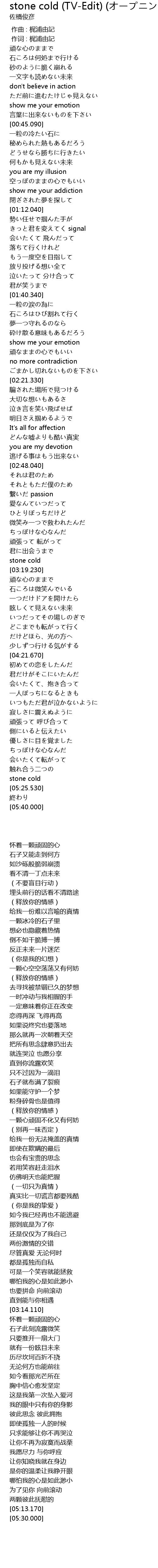 | Song | stone cold (TV-Edit) (オープニングテーマ) |