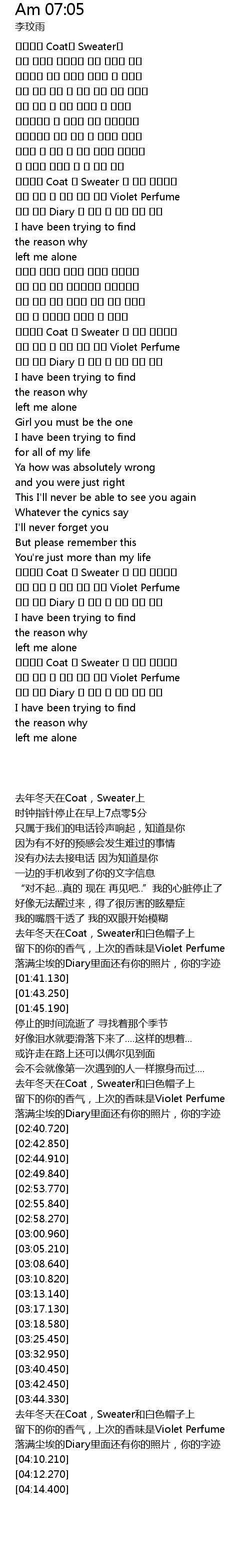 | [03:18.580] | 지난겨울 Coat 에 Sweater 에 하얀 모자위에 |