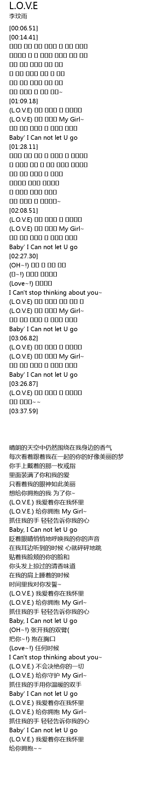 | [03:13.71] | (L.O.V.E) 안아 주고파 My Girl~ |