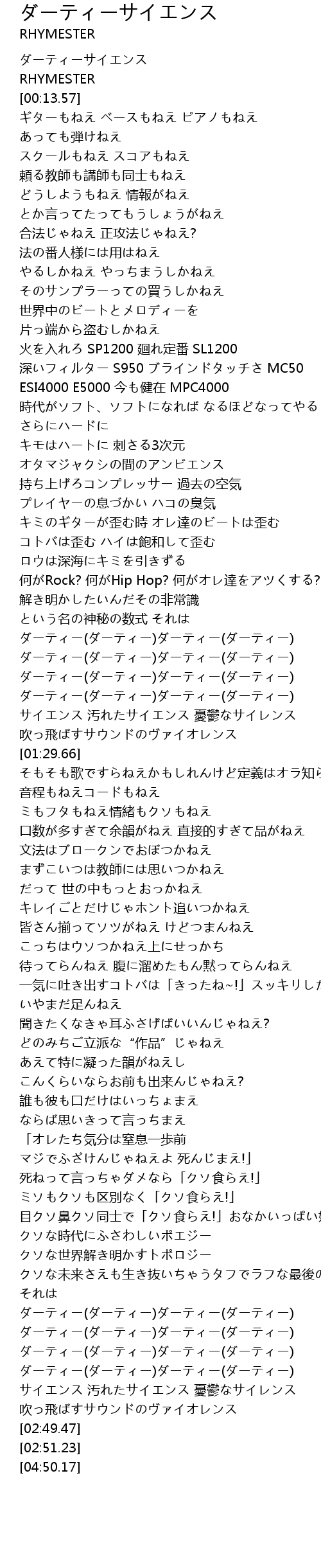 | [01:22.94] | サイエンス 汚れたサイエンス 憂鬱なサイレンス |