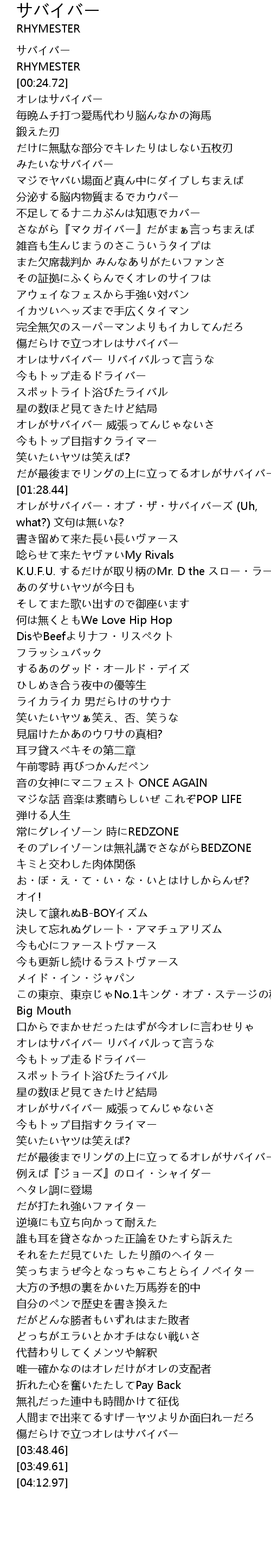 | [01:24.39] | だが最後までリングの上に立ってるオレがサバイバー |