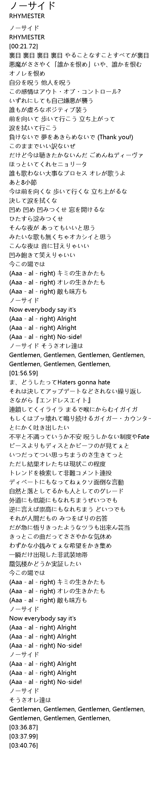 | [01:46.67] | (Aaa - al - right) No-side! |