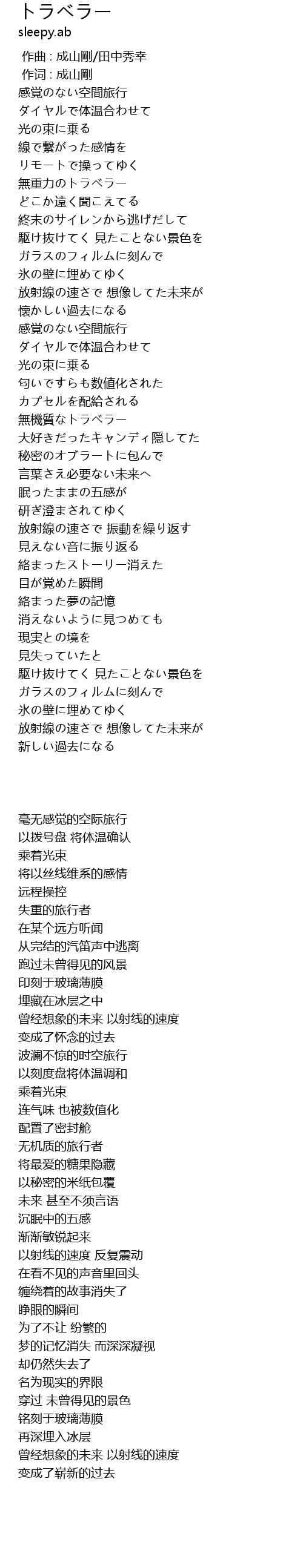 | [02:03.08] | gǎn jué kōng jiān lǚ xíng |