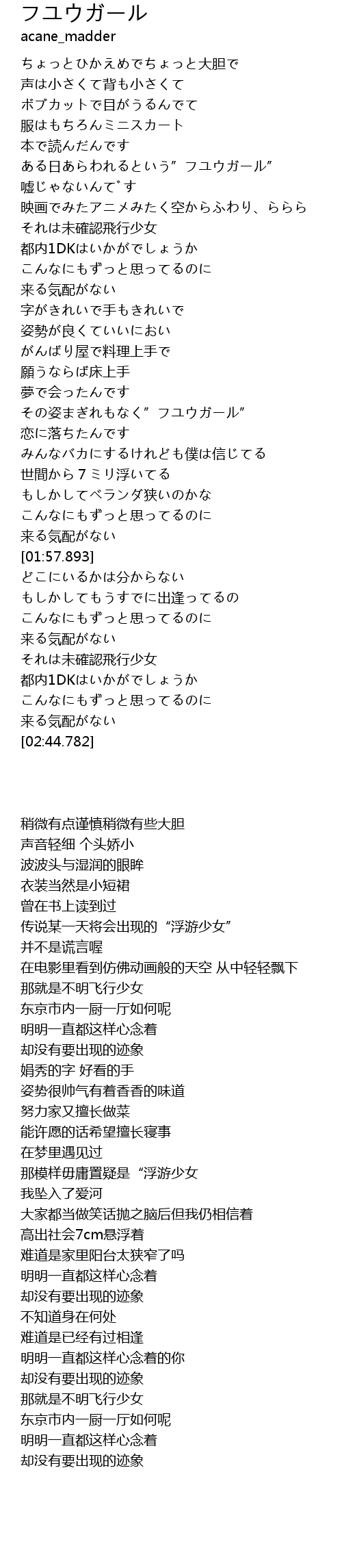 | [01:43.430] | 世間から7ミリ浮いてる |
