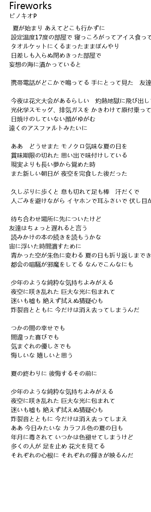 | ああ 今日みたいな カラフル色の夏の日も | |