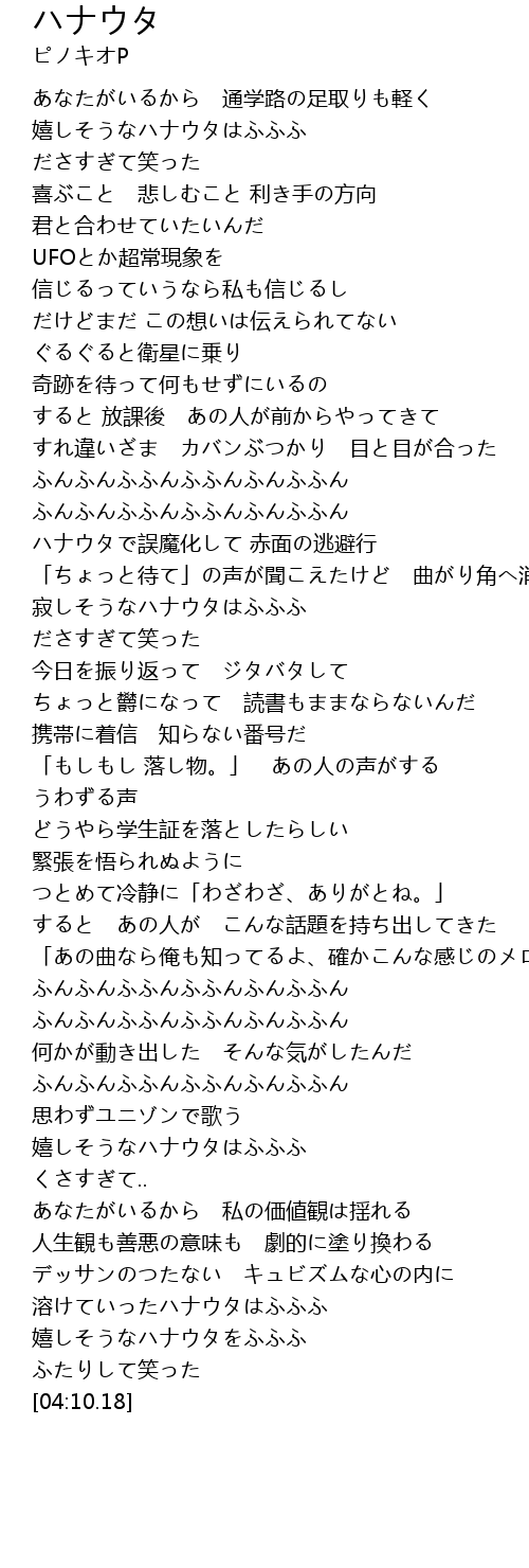 | [03:59.48] | 嬉しそうなハナウタをふふふ |
