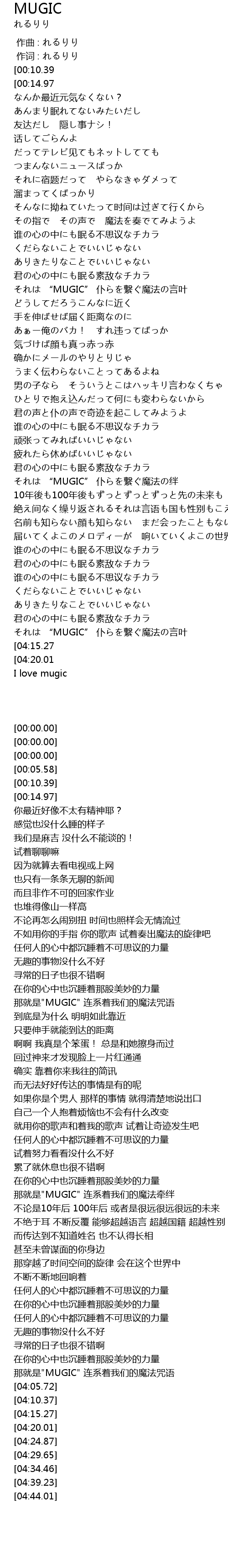 | [00:00.00][00:10.39] | I love mugic, I love you |