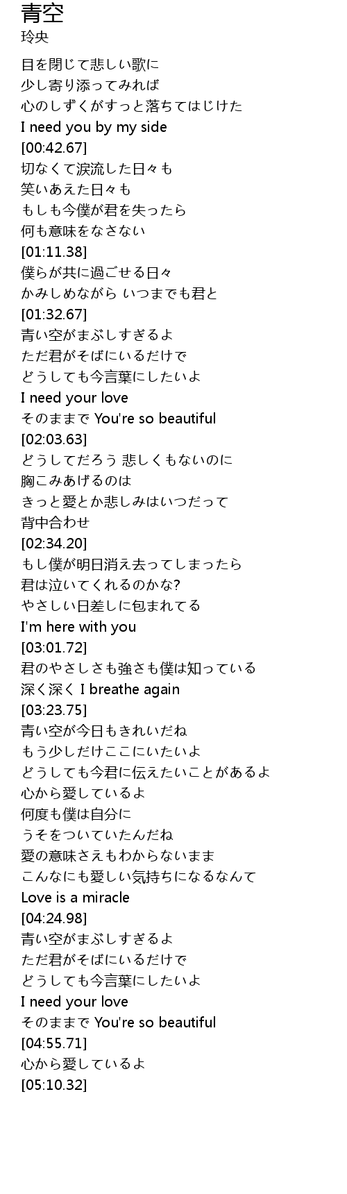 | [04:25.38] | 青い空がまぶしすぎるよ |
