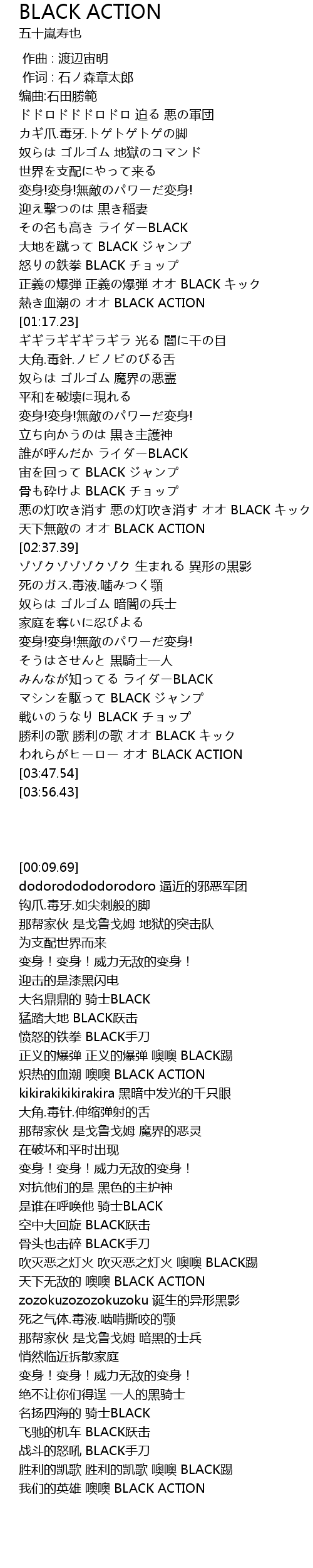 | [03:41.00] | われらがヒーロー オオ BLACK ACTION |