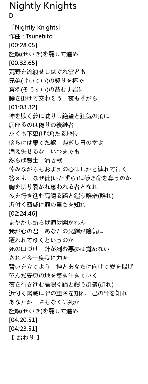 | [03:48.87] | 夜を行き進む高鳴る蹄と鎧う群衆(群れ) |