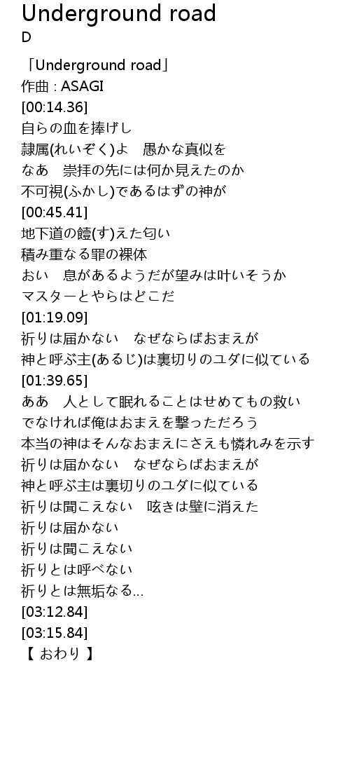 | [00:01.36] | 「Underground road」 |