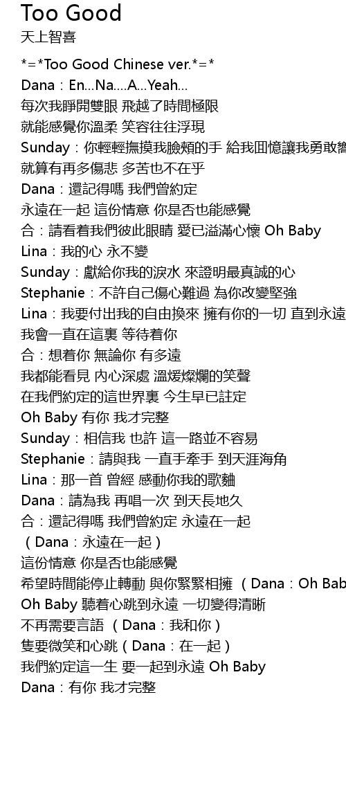 | [00:07.06] | *=*Too Good Chinese ver.*=* |