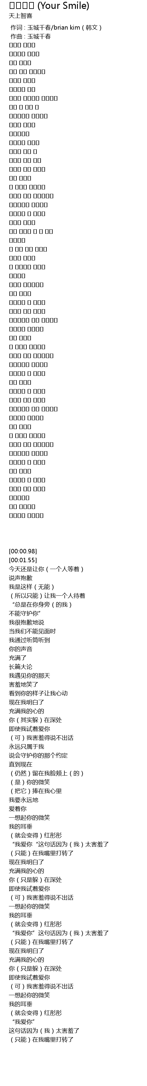 | [00:00.000] | 作词 : 玉城千春/brian kim(韩文) |