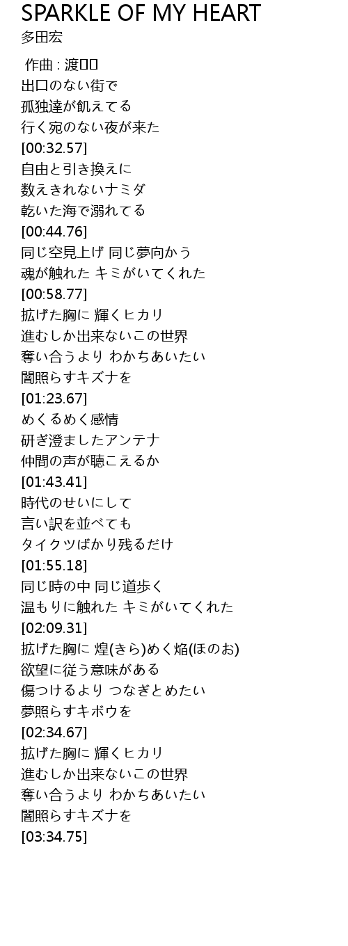 | [03:10.39] | 拡げた胸に 輝くヒカリ |
