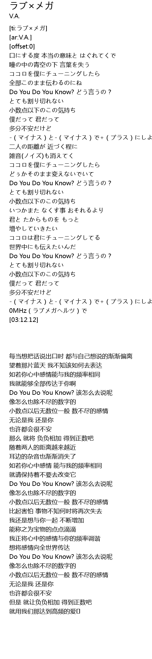 | [03:07.08] | 0MHz(ラブメガヘルツ)で |