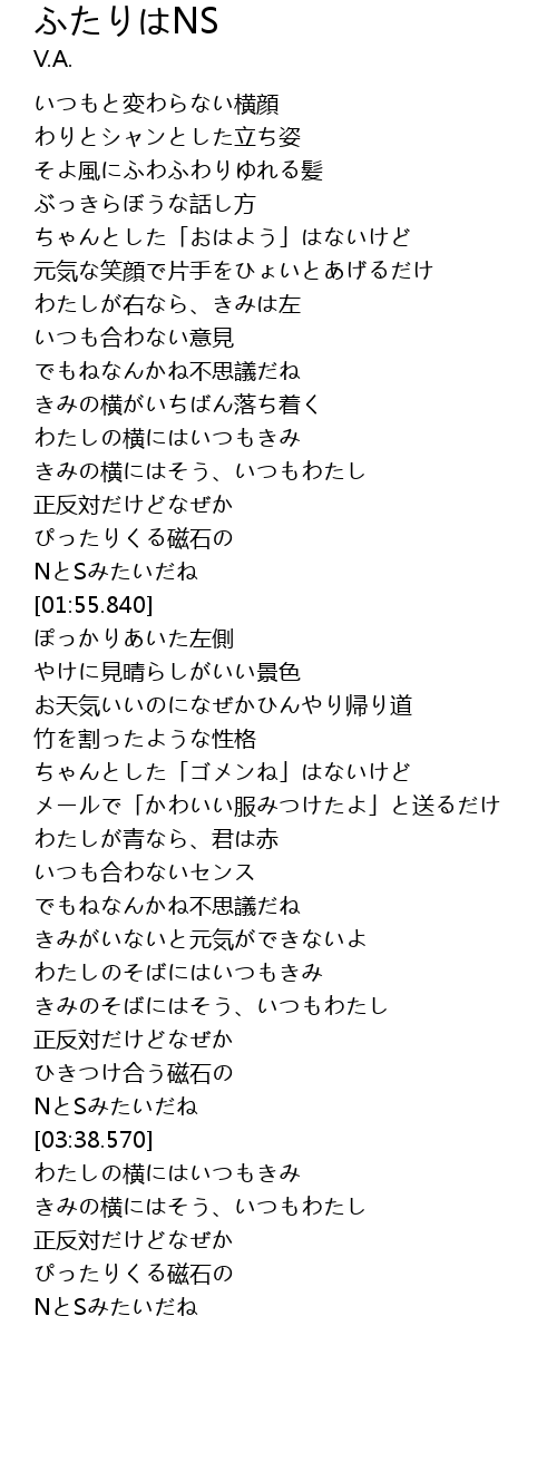 | [02:58.860] | わたしのそばにはいつもきみ |