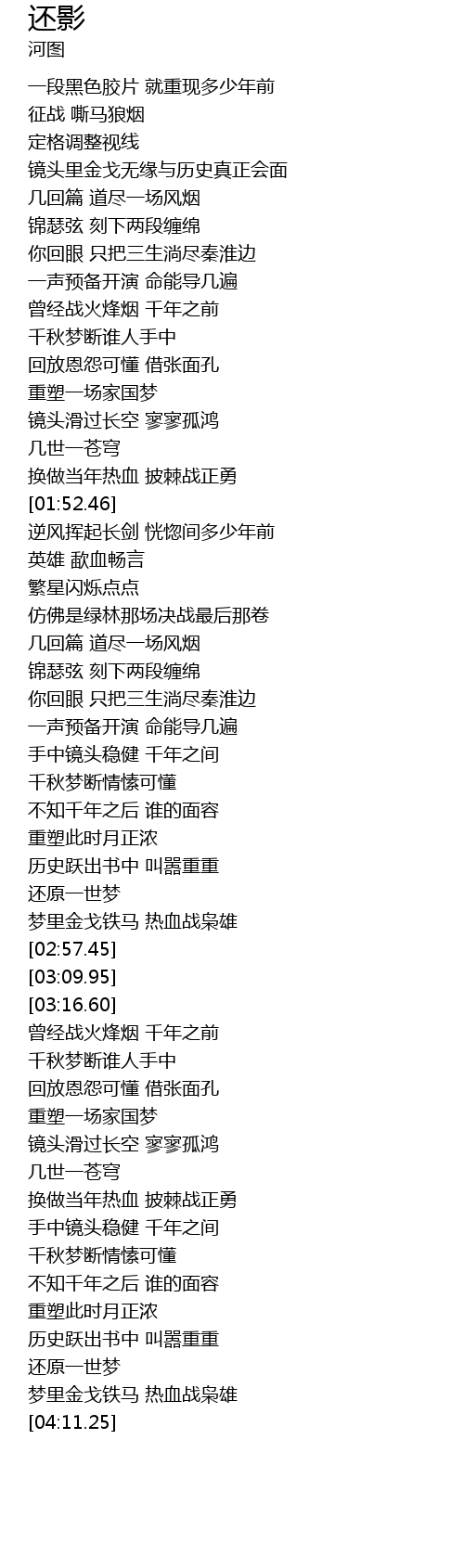 | [03:41.01] | 换做当年热血 披棘战正勇 |