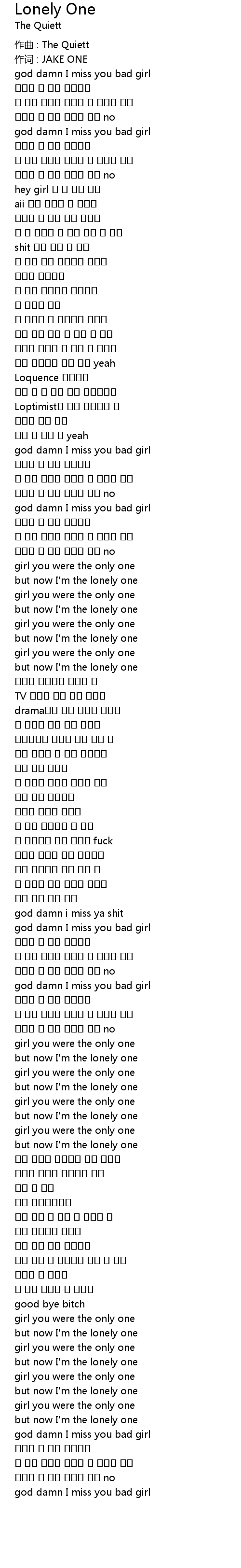 | but now I'm the lonely one | |