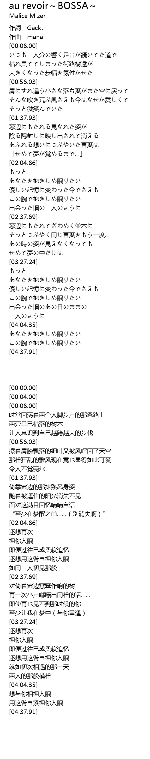 | [00:00.00] | 作詞:Gackt |