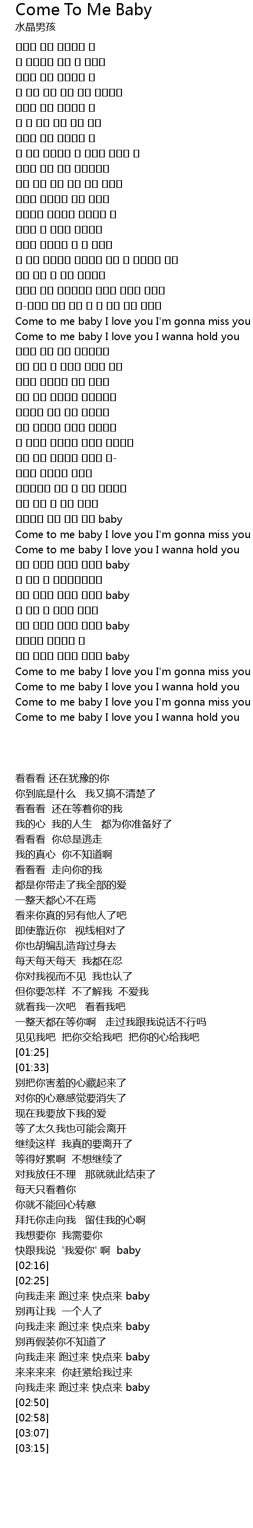 | [02:25] | Come to me baby I love you I wanna hold you |