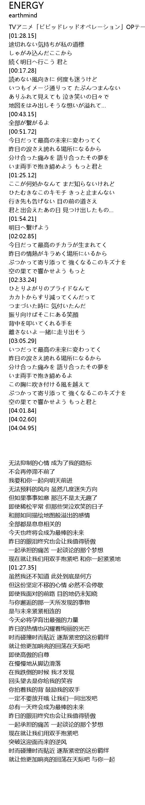 | [01:27.35] | TVアニメ「ビビッドレッドオペレーション」OPテーマ |