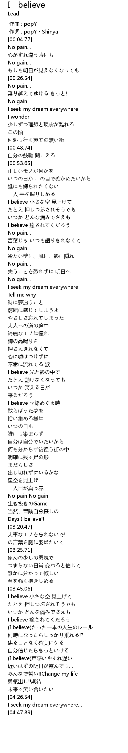 | [04:16.97] | (I believe)戸惑いやすれ違い |