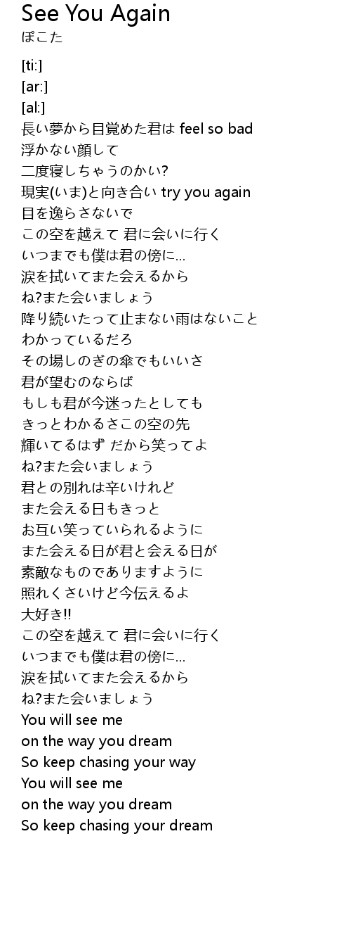 | [03:02.46] | この空を越えて 君に会いに行く |