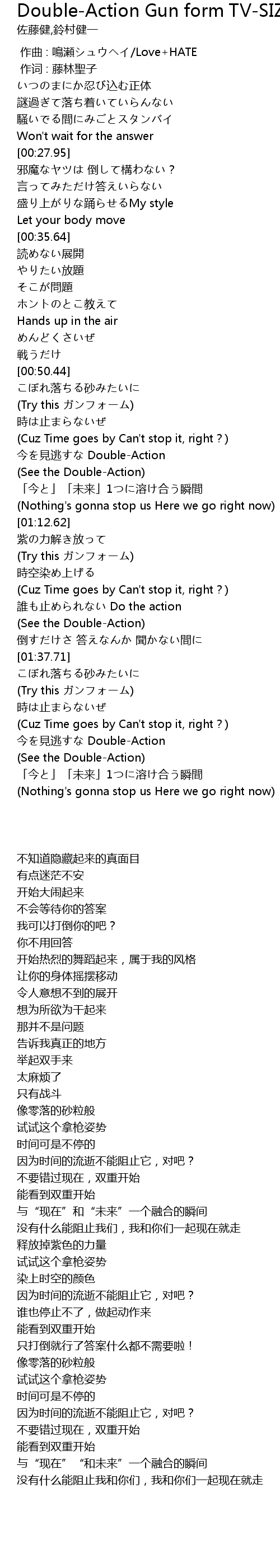 | [01:00.17] | 今を見逃すな Double-Action |