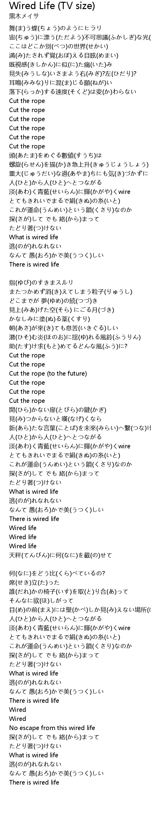 | Song | Wired Life (TV size) |