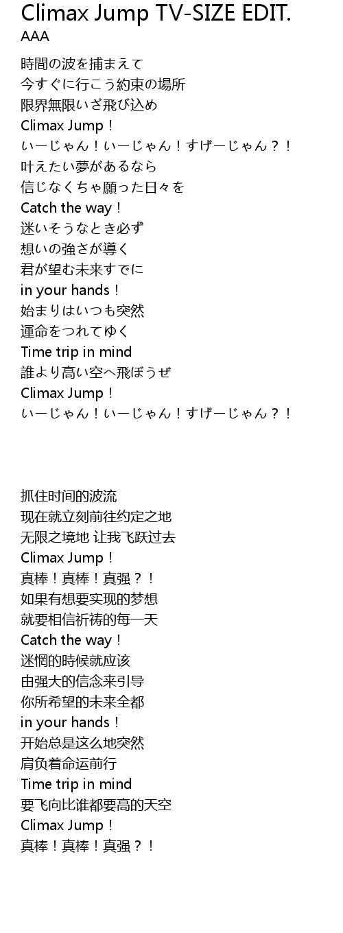 | [00:21.74] | Climax Jump! |