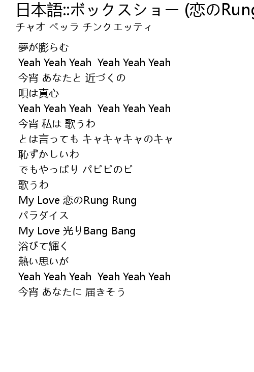 | Song | 日本語::ボックスショー (恋のRung Rung パラダイス) |