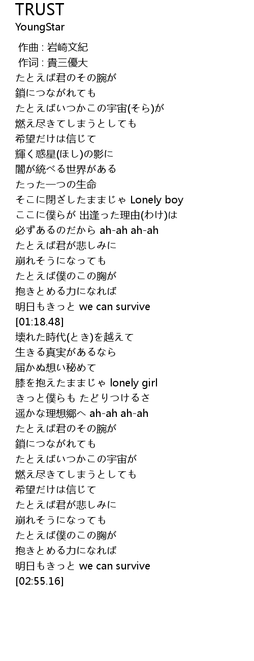 | [02:52.81] | 明日もきっと we can survive |