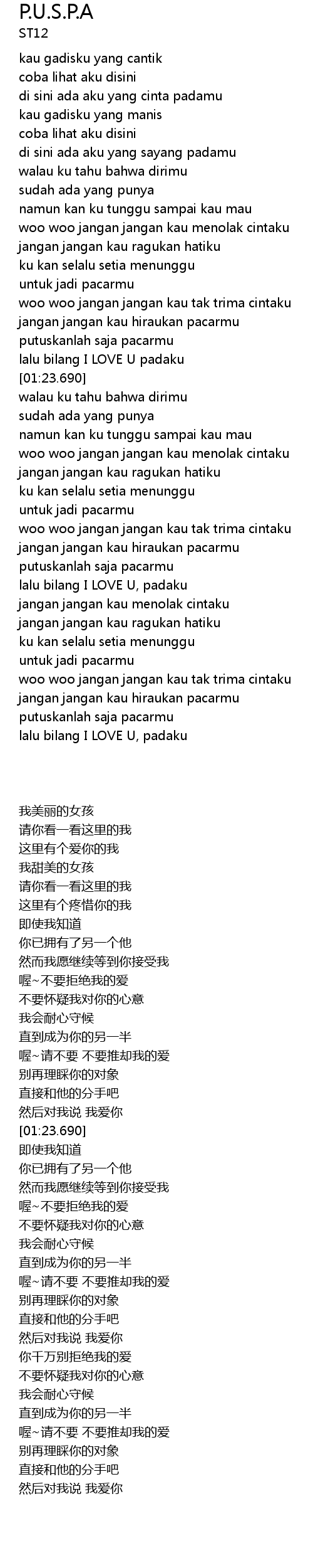 | [00:48.050] | woo woo jangan jangan kau menolak cintaku |