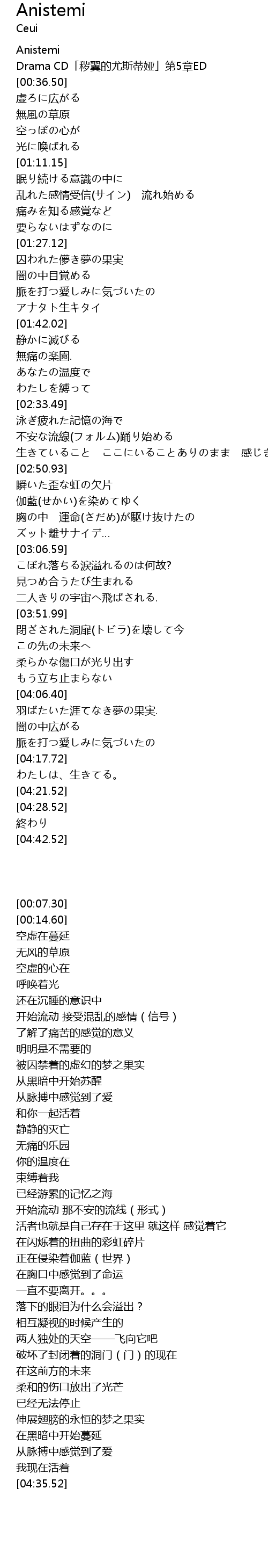 | [00:14.60] | Drama CD「秽翼的尤斯蒂娅」第5章ED |