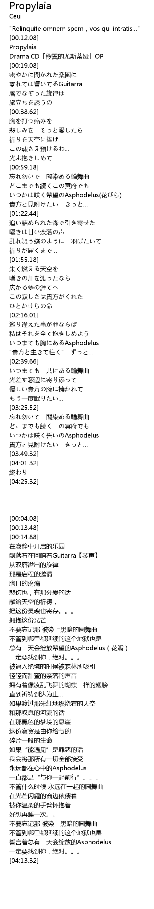 | [00:14.88] | Drama CD「秽翼的尤斯蒂娅」OP |