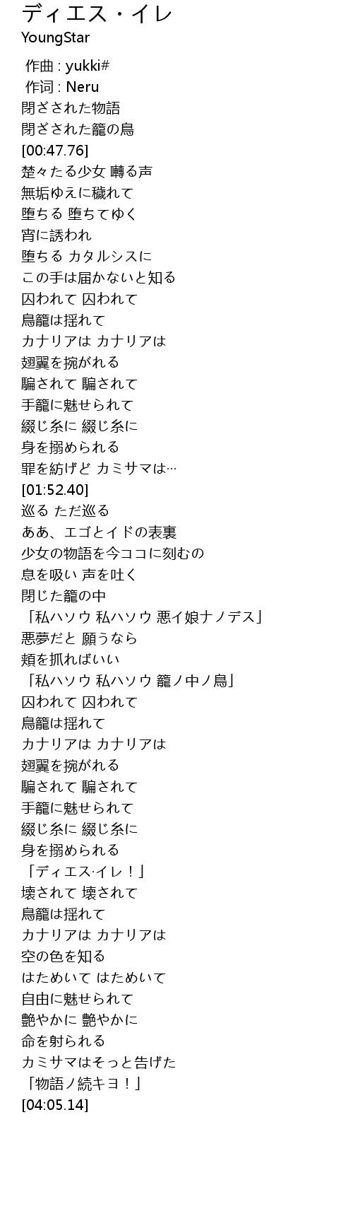 「私ハソウ 私ハソウ 籠ノ中ノ鳥」 |