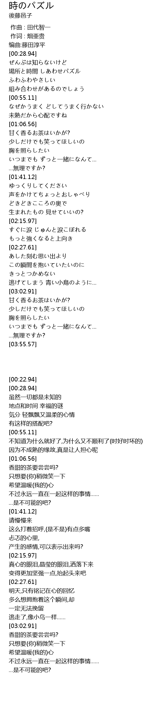 | [00:36.80] | 場所と時間 しあわせパズル |