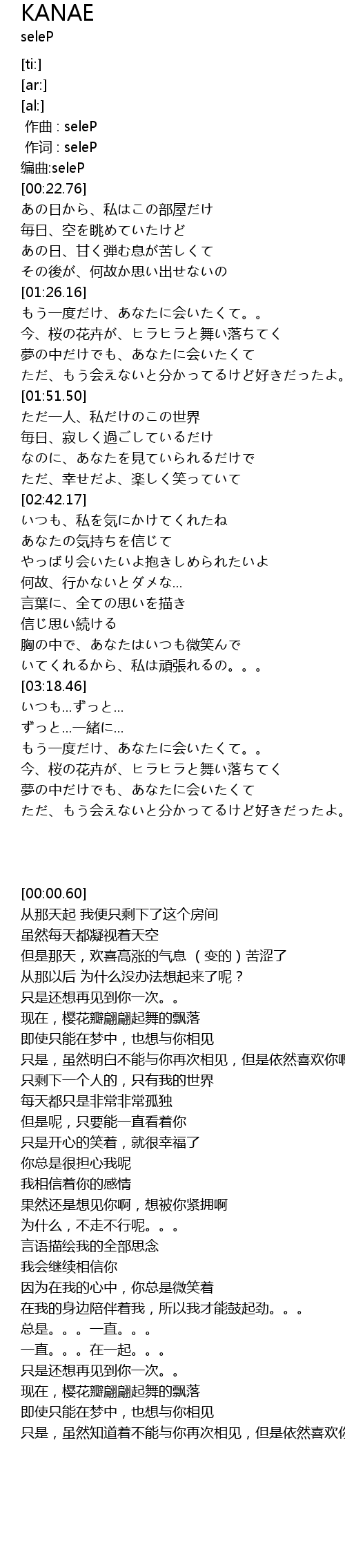 | [03:36.56] | 今、桜の花卉が、ヒラヒラと舞い落ちてく |