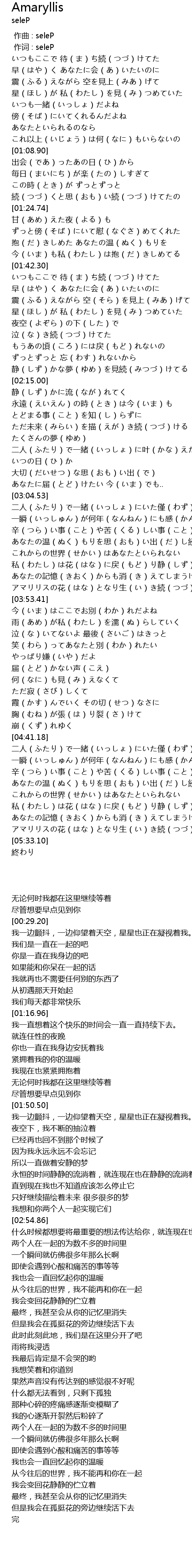 | [03:49.00] | アマリリスの花(はな)となり生(い)き続(つづ)けてる |