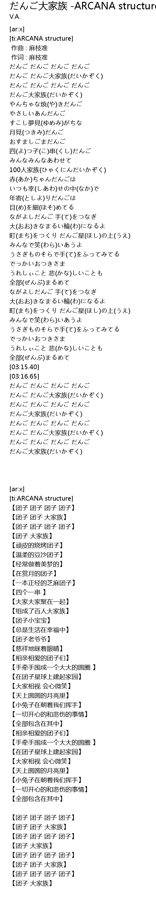 | [04:05.99] | だんご大家族(だいかぞく) |