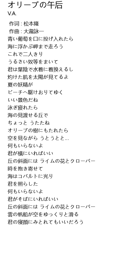 | Song | オリーブの午后 |