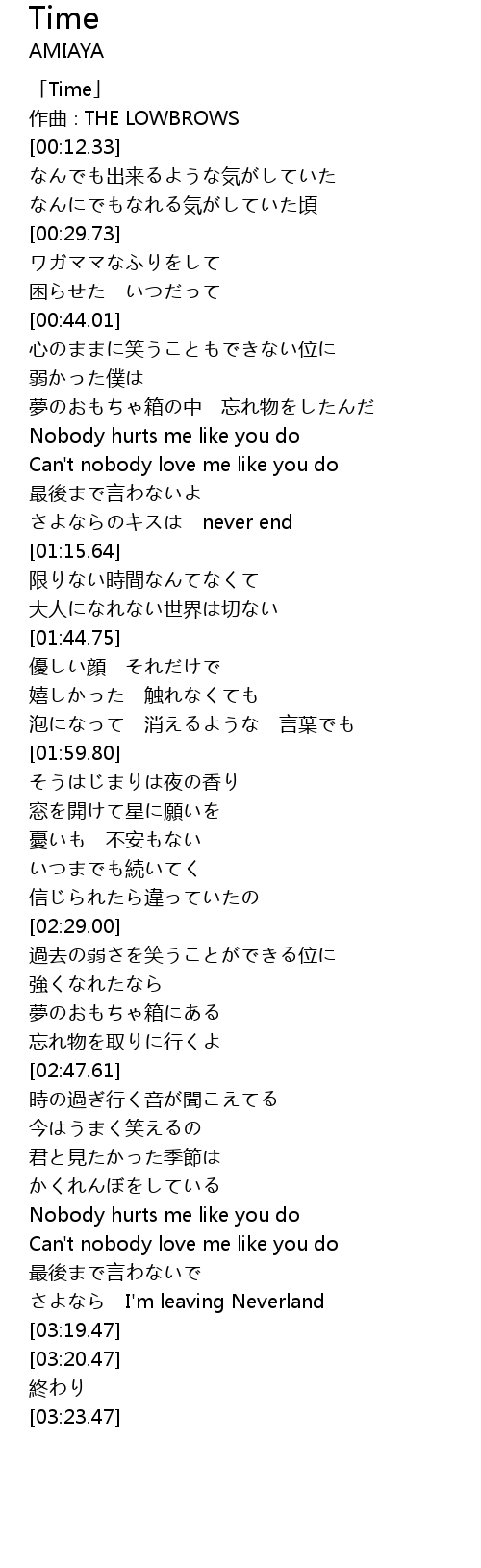 | [03:05.17] | Nobody hurts me like you do |