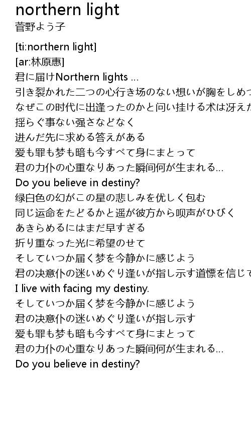 | [01:10.499] | 绿白色の幻がこの星の悲しみを优しく包む |