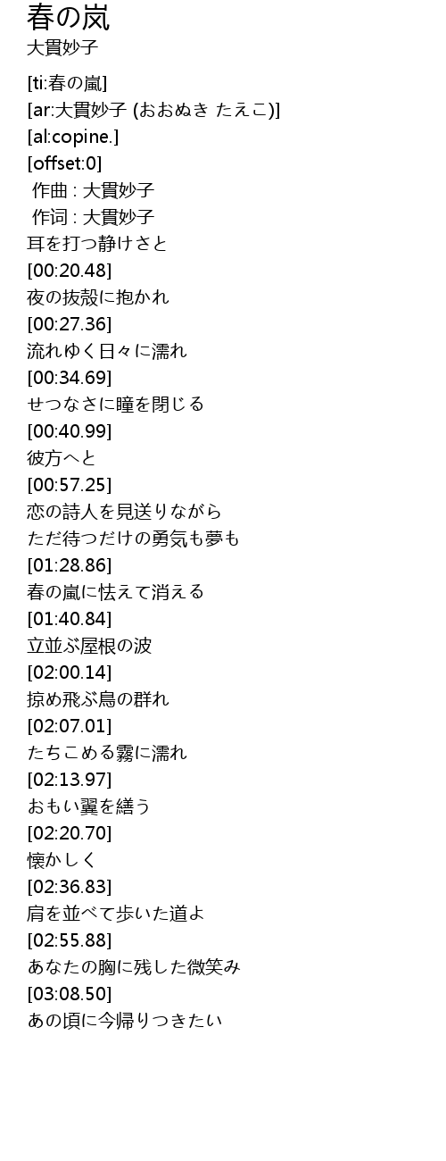 [ar:大貫妙子 (おおぬき たえこ)] |