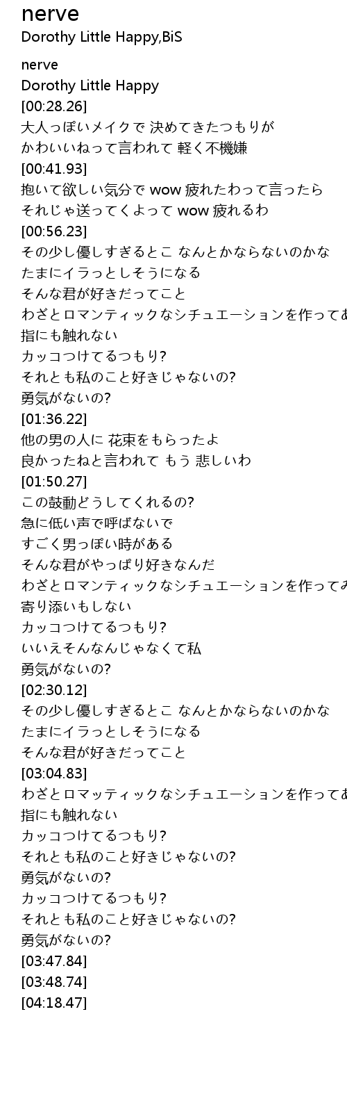 | [00:29.49] | 大人っぽいメイクで 決めてきたつもりが |