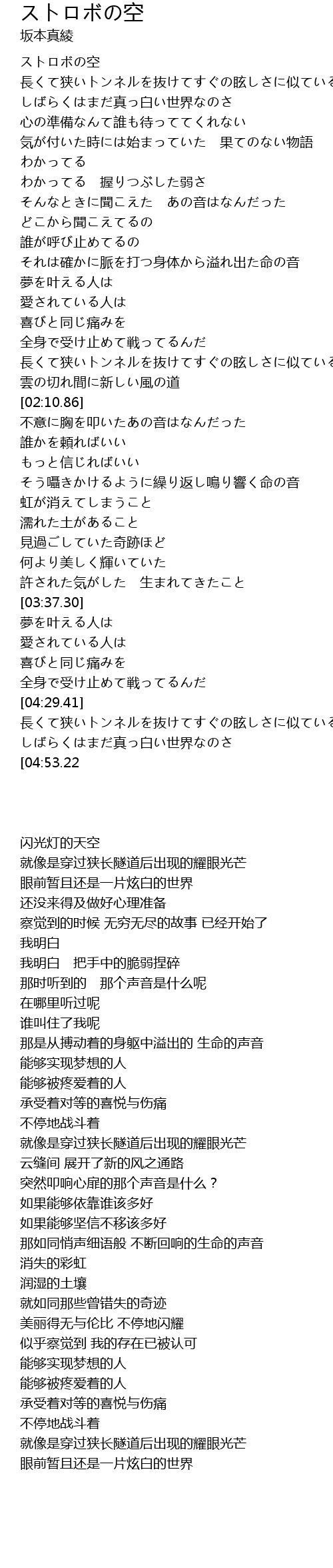 | [01:58.84] | 雲の切れ間に新しい風の道 |