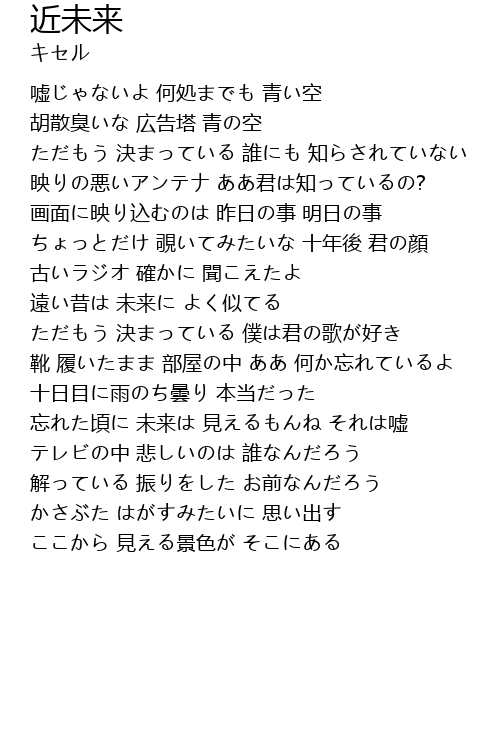 | 忘れた頃に 未来は 見えるもんね それは嘘 | |