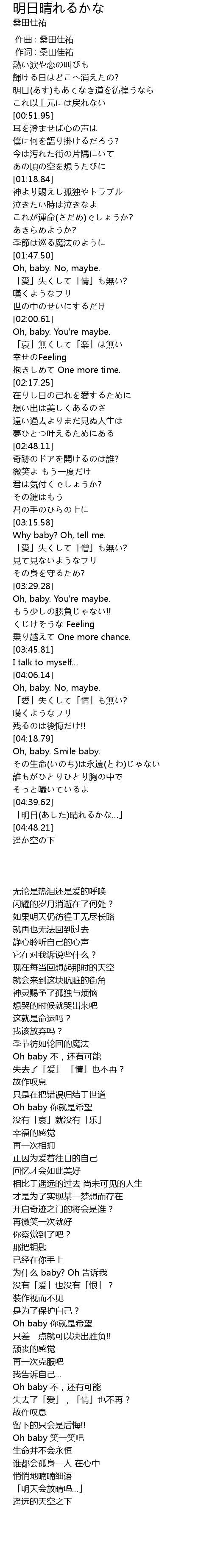 | [04:41.85] | 「明日(あした)晴れるかな…」 |