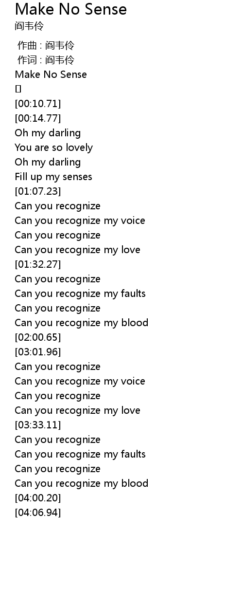 | [00:00.12] | Make No Sense |